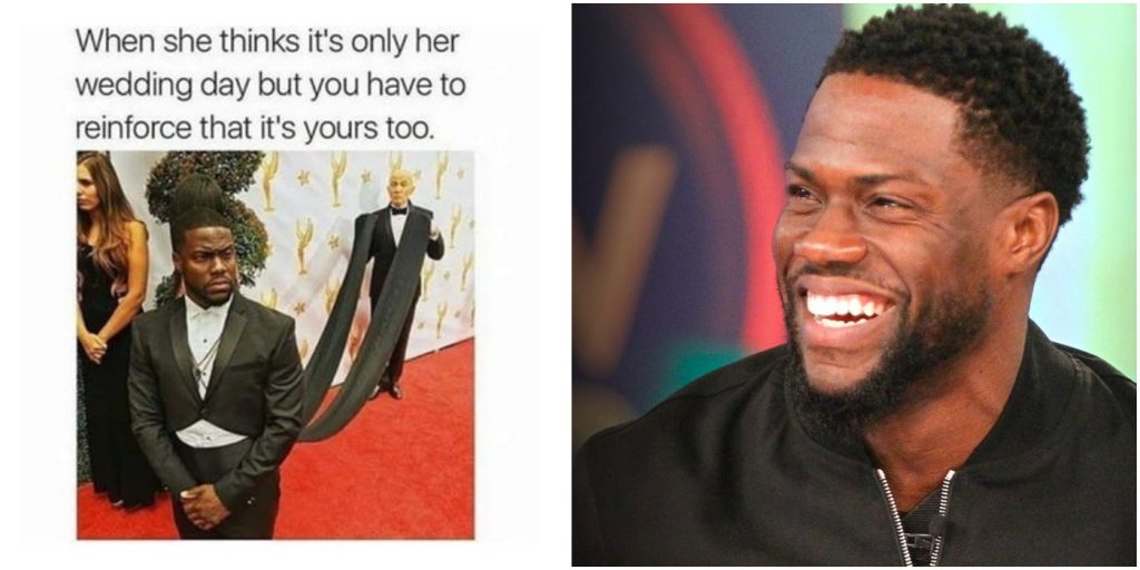 Kevin Hart demuestra en este meme que los novios son tan importantes como las novias en el día de su boda. Todos quieren ver el vestido de la novia y asegurarse de que se vea impecable para las fotos, pero ¿a quién le importa el novio?