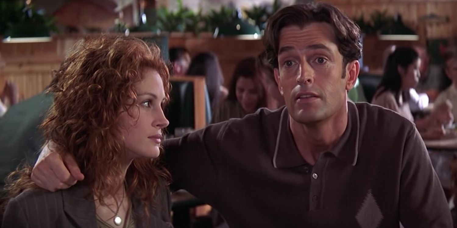 “/> En La boda de mi mejor amigo, Julianne, interpretada por Julia Roberts, se da cuenta de que está enamorada de su mejor amigo Michael, interpretado por Dermot Mulroney. Cuando se entera de que él está a punto de casarse con otra persona, se embarca en una misión para sabotear la boda y recuperarlo. Los creadores de la película nunca tuvieron la intención de permitir que Julianne se reuniera con Michael luego de sus intentos de sabotaje en la boda. Sin embargo, el guión original le dio a su personaje un final más feliz.. En esta versión, Julianne conoce inmediatamente a otro hombre (John Corbett) en la boda y los dos comparten un baile.