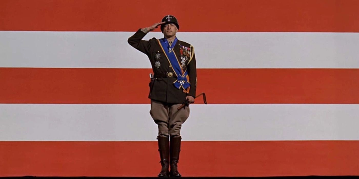 “/> patton Comienza con el general George Patton, uno de los generales estadounidenses más importantes de la Segunda Guerra Mundial, dando un discurso ante una audiencia invisible. La cámara permanece fija en Patton, aunque queda completamente eclipsado por una enorme bandera estadounidense. Esta elección de encuadre resalta el sentimiento de su discurso: que el país es más importante que cualquier hombre por sí solo. En su discurso, Patton afirma que ganar está tan arraigado en la ideología estadounidense que el país nunca perderá una guerra. Es un discurso muy poco ortodoxo. Por lo general, los discursos en las películas de guerra esperan inspirar coraje, pero Patton dice que perder simplemente no es una opción.