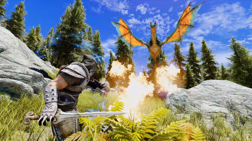 Skyrim sigue siendo uno de los mundos abiertos más famosos y venerados en la historia de los videojuegos. Un extenso reino de inspiración nórdica con picos montañosos, senderos forestales, ruinas antiguas y cuevas heladas, todo ello pidiendo ser explorado. El mundo prospera con los descubrimientos, y es una de las razones por las que la comunidad ha mantenido viva esta parte de Tamril a lo largo de los años con modificaciones y remakes.