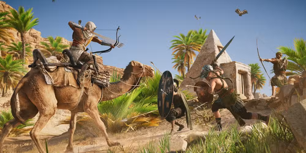 Hay una verdadera sensación de autenticidad en el mundo abierto. con sus ciclos dinámicos día-noche, sistemas climáticos, vida salvaje errante y NPC reaccionarios. Agregue una historia personal e íntima sobre nuestro héroe Bayek y el mundo se convertirá en algo más que un simple telón de fondo. Este es un imperio vivo que respira, lleno de misterios históricos y tesoros escondidos por encontrar.
