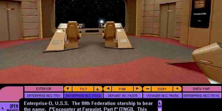 Este videojuego de movimiento completo de los años 90 presenta mapas completos de múltiples barcos diferentes. Tiene barcos de La serie original, la próxima generación, Deep Space Nine, Voyagery Primer contacto. El juego incluso tiene actores del programa que repiten sus papeles. Desafortunadamente, el movimiento en el juego es estático y solo presenta los lugares más icónicos a bordo de cada barco.