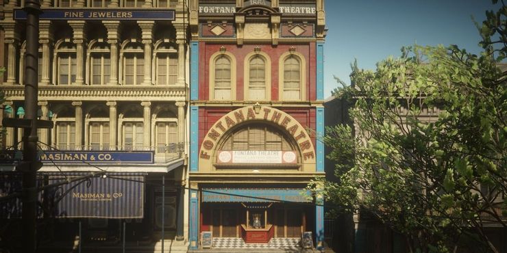 Este teatro de Saint Denis se encuentra en la región de Bayou Nwa del territorio de Lemoyne. Es aquí donde Aldridge T. Abbington presenta un espectáculo de vodevil de magia, música y más. Siguiendo el modelo de la Ópera francesa de Nueva Orleans, este lugar es tan apropiado para una cita nocturna que aparece en una misión secundaria en la que el personaje principal tiene una cita con un antiguo interés amoroso. Si bien puede que no sea una de las mejores ciudades del mundo abierto de los juegos, Saint Denis es indudablemente una maravilla industrial.