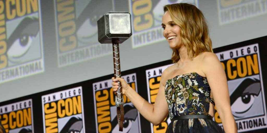 Pero la verdadera emoción llegó cuando la directora Taika Waititi dijo que aparecería como una mujer Thor. Incluso le entregó a Portman Mjolnir en el escenario. La idea se deriva de una trama cómica en la que Jane se considera lo suficientemente digna para empuñar el martillo cuando Thor no puede. Ella pasa junto a Thor, la diosa del trueno y se une a los Vengadores por un tiempo.