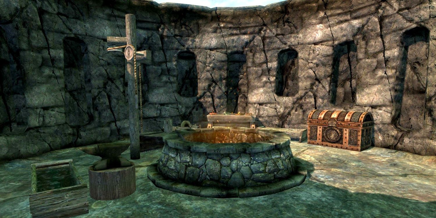 La segunda fragua única en Skyrim es la Forja Atronach, que se encuentra debajo del Colegio de Winterhold, en lo profundo de Midden. Usando esta forja, Dragonborn puede combinar diferentes ingredientes para convocar diferentes atronachs elementales como Flame, Storm o incluso un Dremora. Sin embargo, a diferencia del Altar Atronach en El Elder Scrolls 4: Olvido, estas criaturas serán inmediatamente hostiles y no servirán como seguidores útiles. Aparentemente, el único aspecto útil de Atronach Forge es que también se puede usar para conjurar sales de fuego, que son necesarias para la misión “Avivando las llamas,” de lo contrario la fragua Ofrece muy poco a cambio de los recursos que requiere..