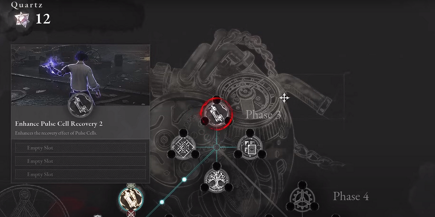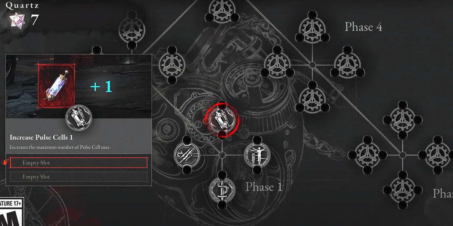 Aumentar las células de pulso 1 sigue siendo un Actualización de la fase 1pero el siguiente nivel lo encontrarás en Fase 2. Los jugadores sabrán que estos son los métodos principales mediante los cuales te curas. Mentiras de P, lo que lo convierte en un elemento muy importante que debes actualizar para proteger tu salud. Aumentar esto es una de las pocas maneras de conseguir más células de pulso Más allá de derrotar a ciertos jefes, así que asegúrate de conseguirlos rápidamente por 2 Quartz cada uno.