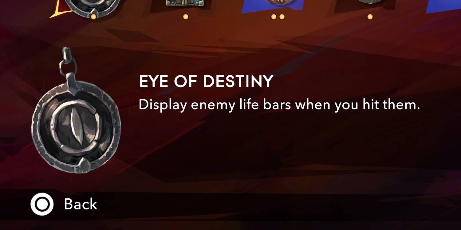 | Ojo del destino | Muestra barras de vida enemigas cuando las golpeas. |