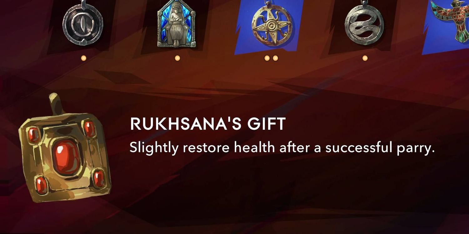 Uno de los amuletos que puedes comprarle al vendedor de The Mage en The Haven es El regalo de Rukhsana, que ocupa dos espacios en el Collar de Sargón. Esta joyería recompensa a los jugadores que realizan paradas frecuentes contra los enemigos. Este amuleto funciona mejor cuando viajas por lugares llenos de enemigos básicos que puedes parar fácilmente reconociendo patrones de ataque simples.