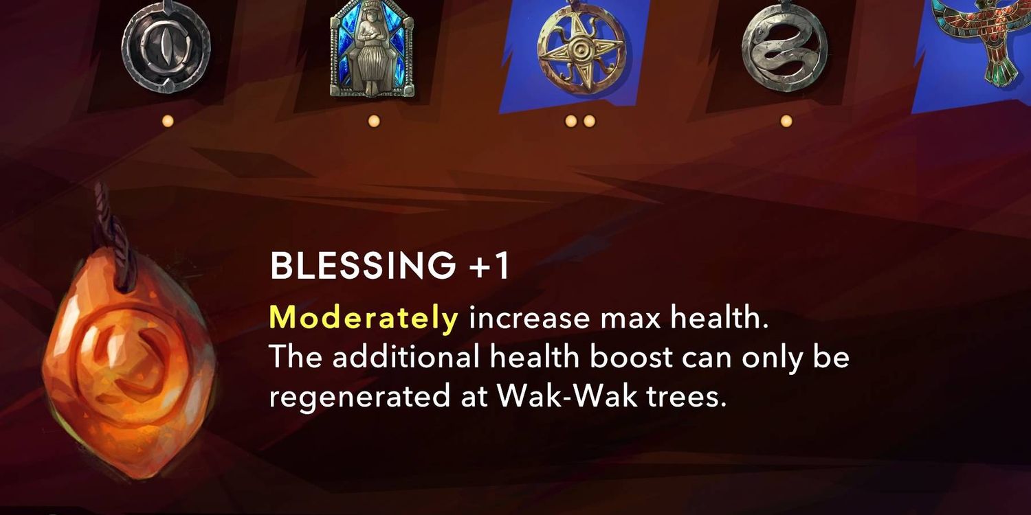 | Bendición | Aumenta ligeramente la salud máxima. El aumento de salud adicional solo se puede regenerar en los árboles Wak-Wak. |