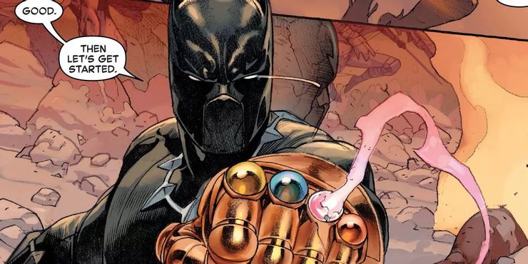 Black Panther a menudo lucha contra las amenazas a Wakanda, pero en el mega evento de cómics de 2015 Guerras secretas, luchó por toda la existencia. Esta historia es épica por su uso del multiverso, pero también por darle a Black Panther el control del Infinity Gauntlet, usándolo para ayudar a restablecer el multiverso destruido.