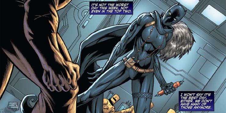 La ciudad de Nueva York continuaría siendo un factor importante para Black Panther cuando asumió el papel de Daredevil en los cómics por un tiempo. “El hombre sin miedo” es un arco de la historia de Black Panther sobre cómo hace que el personaje vuelva a lo básico. En ese momento, T’Challa se había recuperado recientemente de heridas graves. Su hermana, Shuri, se había hecho cargo de Black Panther. T’Challa no es más que un héroe y, sin los adornos de su cargo de rol, aprende a ser simplemente un héroe y un hombre de la gente en Hell’s Kitchen.