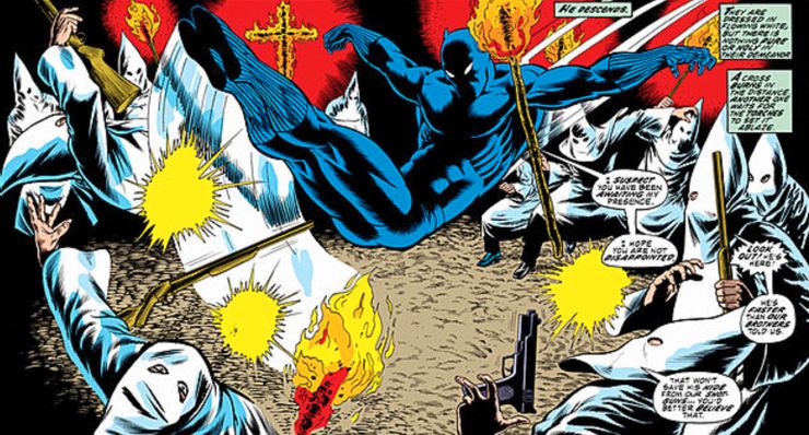 “Panther’s Rage”, una historia importante que se desarrolló en Acción de la jungla # 6-24 a principios de los 70, vio a Black Panther enfrentarse al Ku Klux Klan. La historia es significativa para demostrar cómo Black Panther fue un gran vehículo para enfrentar problemas sociales complejos. Otros cómics de superhéroes de la época rara vez abordaban estos temas con la misma determinación. La historia también es clave en la historia del cómic, ya que algunos la consideran la primera verdadera novela gráfica de Marvel, con una historia que abarca años de problemas.