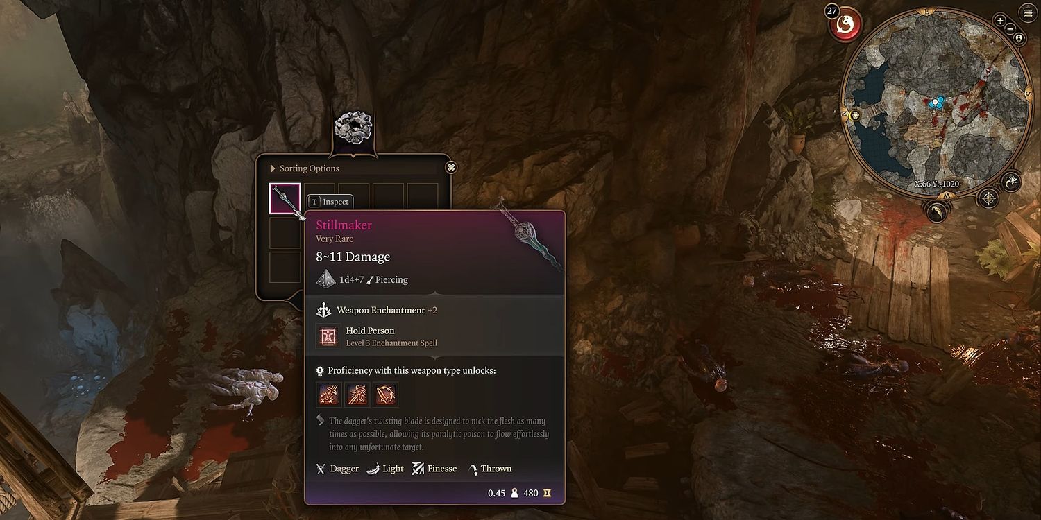 “/> Al investigar la cueva debajo del Templo de la Mano Abierta durante la misión “Resolver los asesinatos en el templo a mano abierta” el grupo puede encontrar esta increíble daga. Stillmaker es una de las mejores piezas de botín oculto, ya que la daga está en un agujero cerca de una de las entradas. Si bien el 1d4 más dos de Stillmaker no es el más impresionante, la daga viene con el hechizo. Hold Person, que es excelente para controlar multitudes.