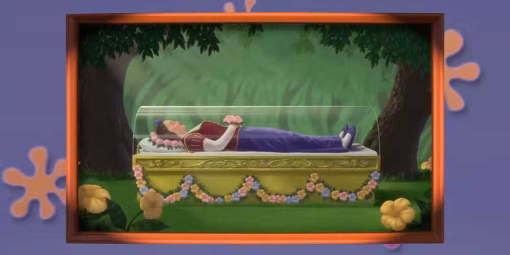 Cuando Lord Farquaad se entera por el Espejo Mágico de que necesita casarse con una princesa para poder convertirse en rey, el espejo le muestra tres princesas solteras. El Espejo Mágico los presenta como si de un programa de citas se tratara, dando algunos detalles breves y básicos sobre cada uno. Despedida de soltera no. 2 es Blancanieves y su descripción incluye una mención de los siete enanos..