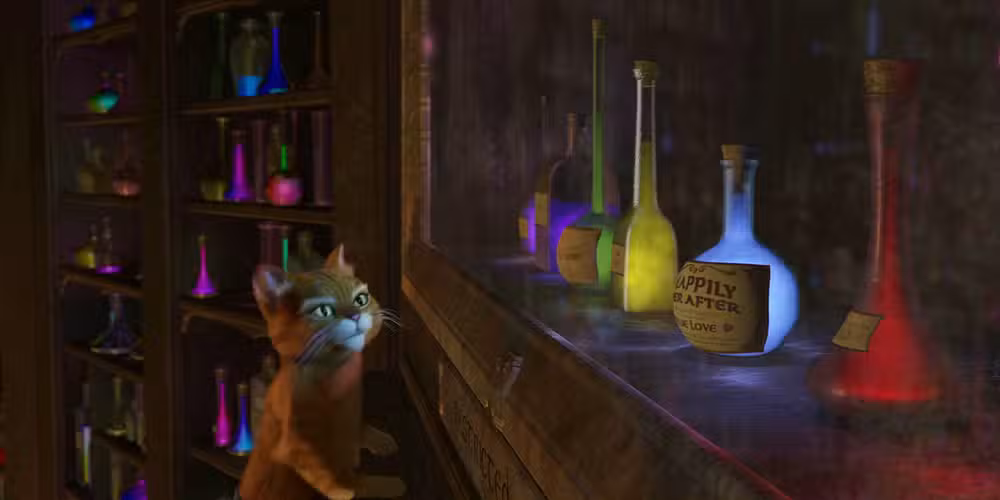 Shrek, Artie, Donkey y Puss conocen a Merlín (Eric Idle), el profesor de magia retirado de Artie, que es muy extraño y un poco confundido. Merlín los transporta de regreso a Muy Muy Lejano mediante magia, pero el hechizo tiene consecuencias inesperadas cuando el Gato y el Burro cambian de cuerpo.