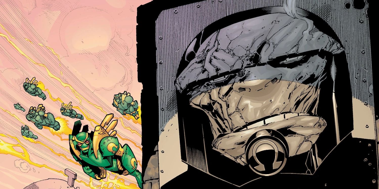 Grant Morrison JLA Run vio una explosión de grandes ideas y desató una serie de conceptos elevados en el arco argumental “Rock of Ages”. En él, Aquaman, Kyle Rayner y Flash regresan de una aventura en el espacio y encuentran sus mentes metidas en los cuerpos de sus seres futuros. Están en un mundo donde las fuerzas de Apokolips se han apoderado de la Tierra, y los héroes deben encontrar a los miembros restantes de la Liga de la Justicia antes de que el villano Darkseid llegue para consolidar su conquista de la Tierra. La historia trae a Kirby clásico Nuevos dioses guerra metafórica contra el fascismo a los héroes terrestres de DC.