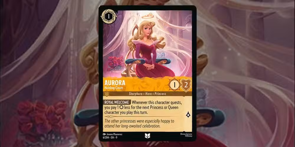 Las princesas son uno de los temas principales de Legendarioy aunque “Aurora – Holding Court” no es nada espectacular, es una carta que sería beneficiosa para un mazo de Princess. Es barato, se puede entintar y cuando realiza misiones tiene el beneficio de hacer que una carta de Princesa o Reina cueste uno menos cuando se juega ese turno.
