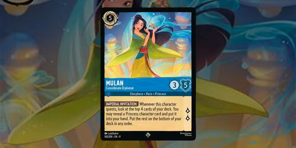 Otra princesa del Legendario El conjunto “Mulan – Considerate Diplomat” ofrece un útil sorteo de cartas en una baraja con temática de princesa. Cada vez que Mulan realiza misiones, que también ofrecen dos historias, puedes Mira las cuatro primeras cartas del mazo y, si hay un personaje de Princesa allí, puedes ponerlo en tu mano..