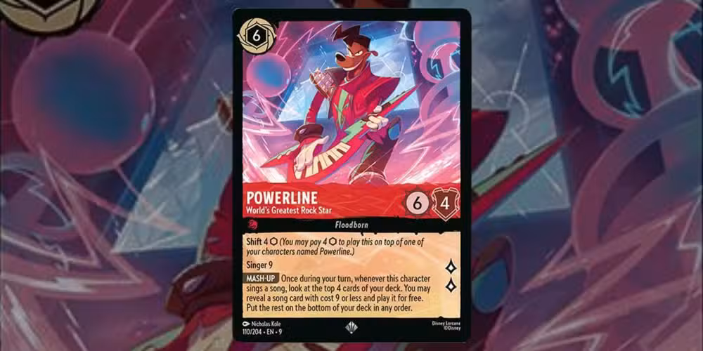 Similar a la tarjeta de Max anterior, “Powerline – La estrella de rock más grande del mundo” es otro poderoso cantante de La película tonta. También puede cambiar de posición durante cuatro, cuenta como Cantante 9 y cada vez que canta una canción, puedes mirar las cuatro primeras cartas de tu mazo. Si revelas una carta de canción con un coste de nueve o menos, podrás reproducirla gratis.