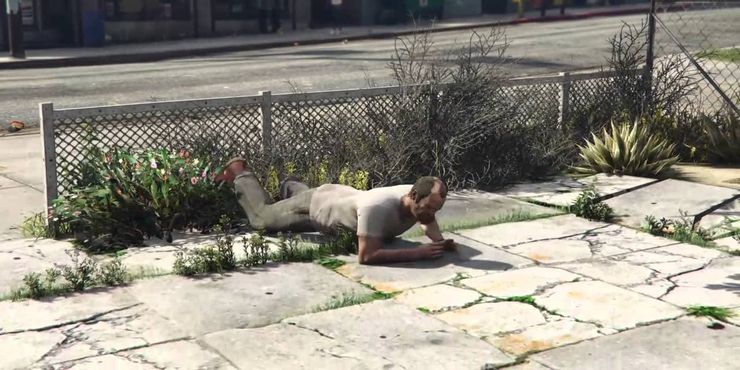 O, al menos, intentarlo. El pie de Trevor queda atrapado en la cerca y cae de bruces, lo que resulta en un explosivo ataque de ira en el que amenaza con matar a Franklin por reírse. Es divertidísimo, pero también es perfectamente Trevor.