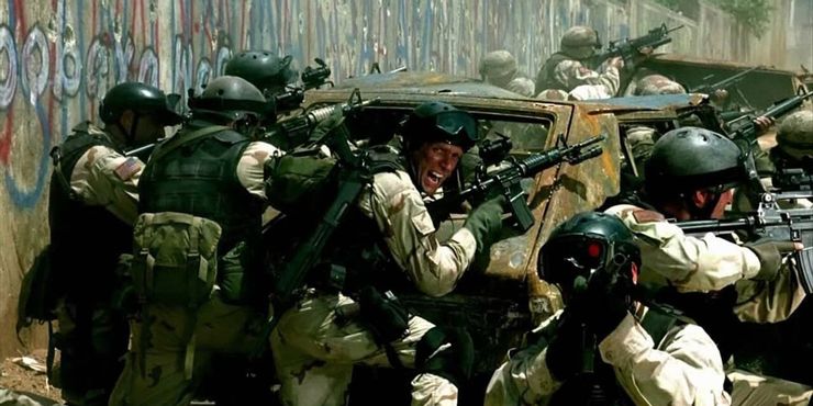 En 2001, Ridley Scott dirigió Halcón Negro abajo y contó la historia de la incursión del ejército de los Estados Unidos en 1993 en Mogadiscio. Basada en la novela de Mark Bowden, la película sigue a un grupo de soldados enviados en una misión de rescate cuando una misión anterior sale mal y los soldados estadounidenses quedan atrapados detrás de las líneas enemigas.