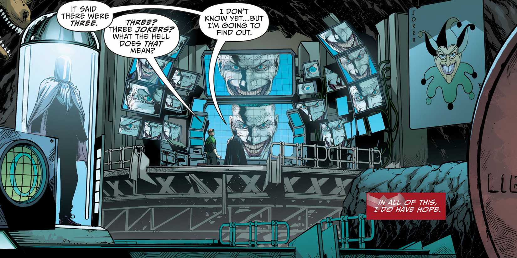 Batman ha sido molesto por el Joker durante años y durante la historia de la “Guerra Darkseid”, Bruce se sentó sobre la silla Mobius y se convirtió en el Dios del conocimiento. Después de probar las habilidades de la silla, Batman le preguntó a la fuente de energía de Metron cuál era el verdadero nombre del Joker. Aunque Batman se sorprendió por la respuesta que le dijo, no se reveló hasta los problemas más tarde que la silla le dijo Bruce que en realidad había tres bromistas en lugar de uno.