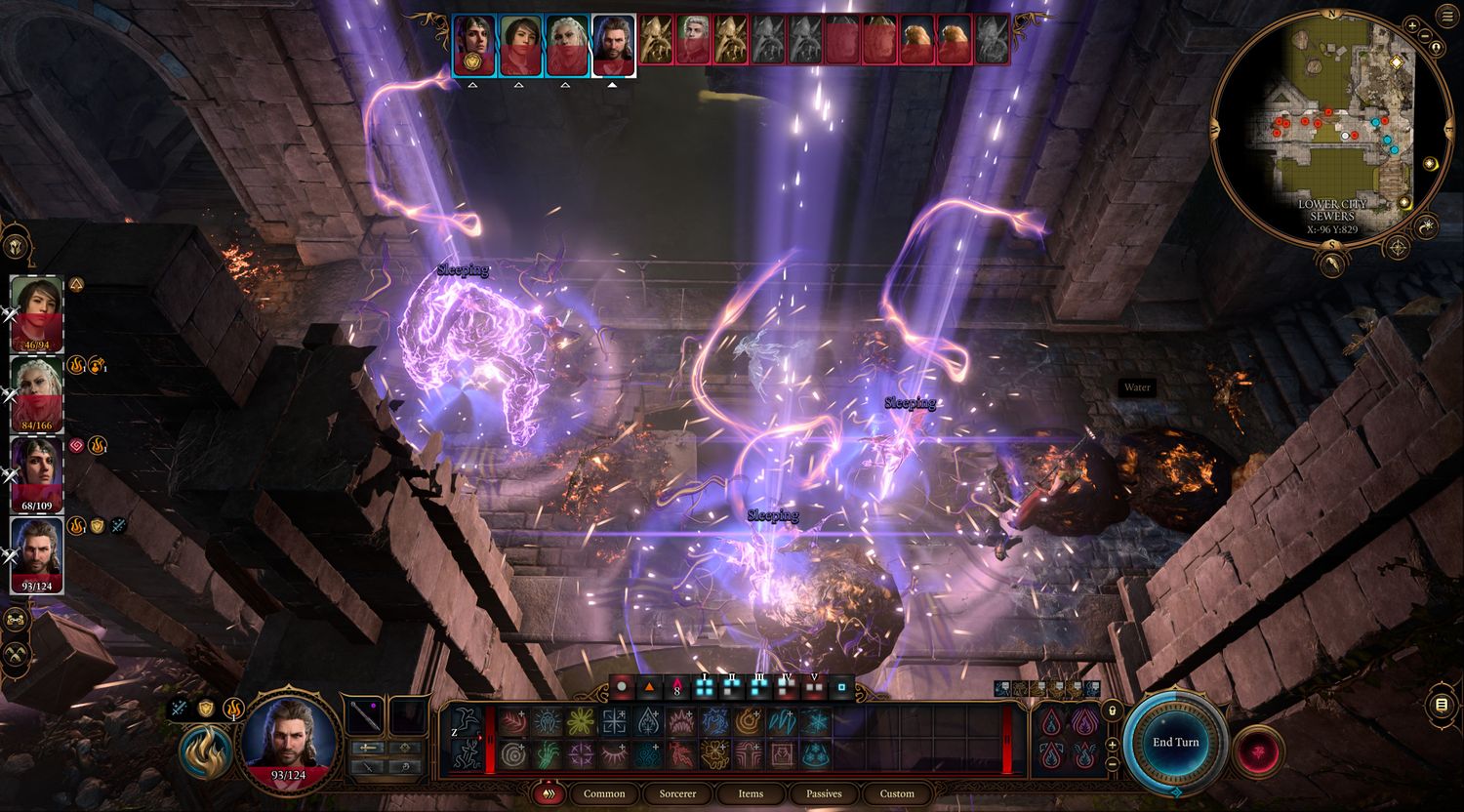 Los enemigos dormidos no pueden actuar, y los enemigos que quedan se ven obligados a desperdiciar acciones empujándolos y empujándolos para romper el hechizo. Los enemigos no pueden realizar tiradas de salvación contra el sueño, por lo que está garantizado que golpeará y enviará a grupos enteros de enemigos a un sueño pacífico. Uno de los Bárbaros o Luchadores del grupo puede atravesarlos fácilmente.