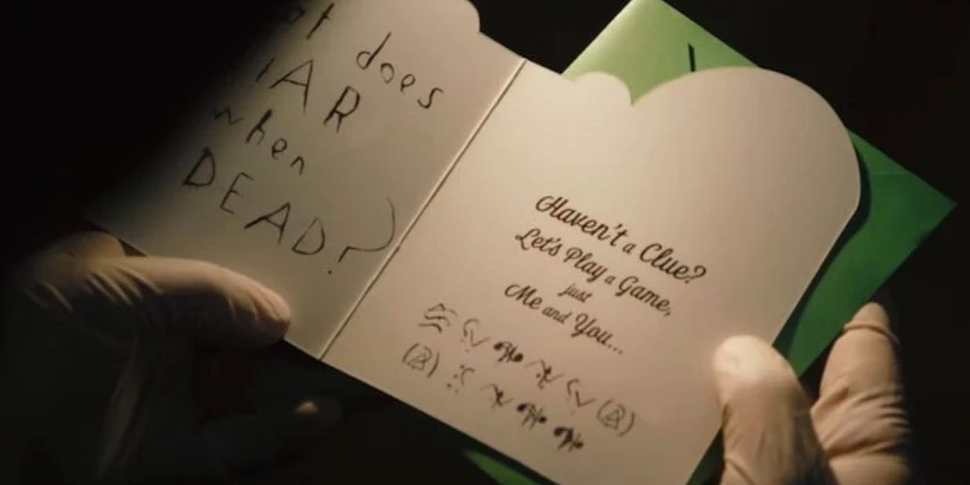 Son cruciales para el intrincado esquema de Riddler, pero hay más en ellos que los acertijos escritos en ellos. Cada uno es una posible referencia a otros miembros de la icónica galería de pícaros de Batman: la Corte de los Búhos; Hugo extraño; Hiedra venenosa; Sombrerero Loco; y el ventrílocuo y Scarface.