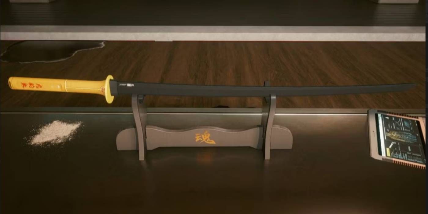 Cuando intentas hacer entrar a Satori “El atraco,” tendrás que ir al techo después de que el personaje T-BUG te diga que abandones la habitación. En lugar de atravesar la puerta, sube las escaleras y elimina a los guardias para encontrar la espada en el vehículo Arasaka.