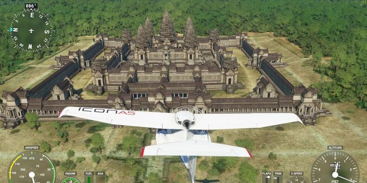 Tiempo Microsoft Flight Simulator contiene cientos de impresionantes paisajes urbanos modernos, el antiguo Angkor Wat de Camboya se erige como uno de los lugares más impresionantes de la antigüedad para visitar. Aún en notable forma 900 años después de su construcción, este complejo, que ha servido como complejo de templos hindúes y budistas y es el complejo religioso más grande del mundo, revela su impresionante altura y se extiende maravillosamente cuando se ve desde el cielo.
