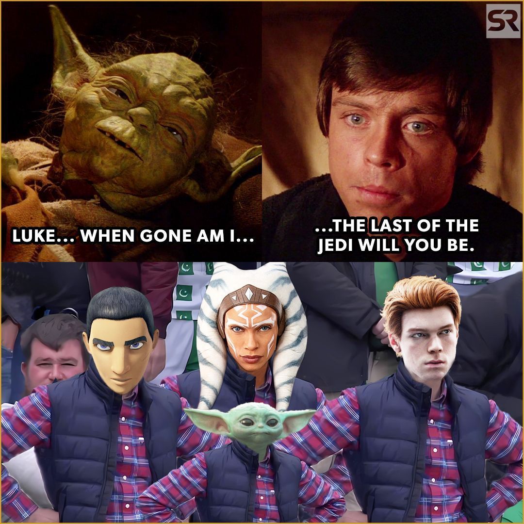 cuando el original Guerra de las Galaxias La trilogía terminó con el lanzamiento de El regreso del JediLas últimas palabras proféticas de Yoda de que Luke Skywalker era el último de los Jedi parecían haberse hecho realidad. Sin embargo, a medida que la franquicia continuó impulsando la Guerra de las Galaxias línea de tiempo más y más, era obvio que el Maestro Jedi había sido un poco miope con su profecía. Como se muestra en uno de los memes más divertidos de la semana, personajes como Ahsoka Tano, Ezra Bridger, Grogu e incluso Cal Kestis demostraron que esa afirmación era incorrecta cuando todos se convirtieron en poderosos usuarios de la fuerza por derecho propio.