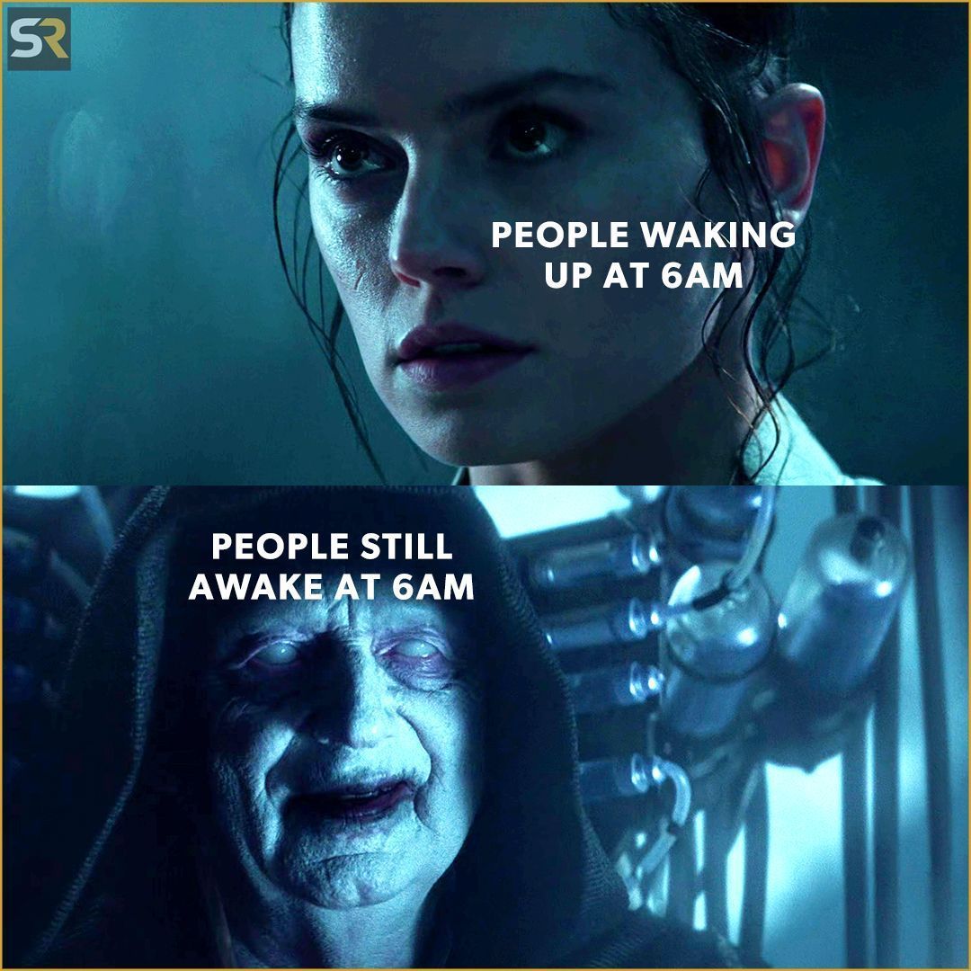 Aunque se podría argumentar que Rey nunca fue un Palpatine en absoluto, la revelación de su ascendencia en Star Wars: El Ascenso de Skywalker sigue siendo un giro memorable que dividió a la base de fans. Reflejando más lo que había dentro que lo que había fuera, este meme parece comparar a los madrugadores con la joven y fresca Rey, y las personas que pasan toda la noche con el rostro canoso del Emperador Palpatine. Todo divertido, el meme baja la estatura del villano amenazante al convertirlo en el blanco de una broma.