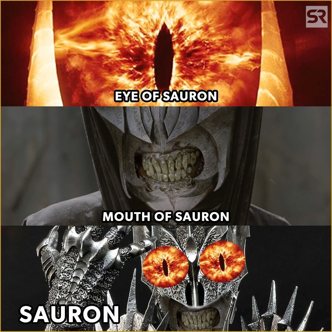 Debido a las descripciones vagas en los libros, el señor de los Anillos las películas a menudo se tomaban libertades al crear algunos de los personajes más notables que aparecían en la pantalla. La identidad completa de Sauron fue explicada en varias formas de señor de los Anillos medios de comunicación, pero la trilogía cinematográfica solo les dio a los fanáticos la espeluznante boca de Sauron y su ardiente ojo que todo lo ve. Cuando se combina como se muestra en este hilarante meme de la semana, el rostro completo de Sauron es algo más tonto que amenazante.