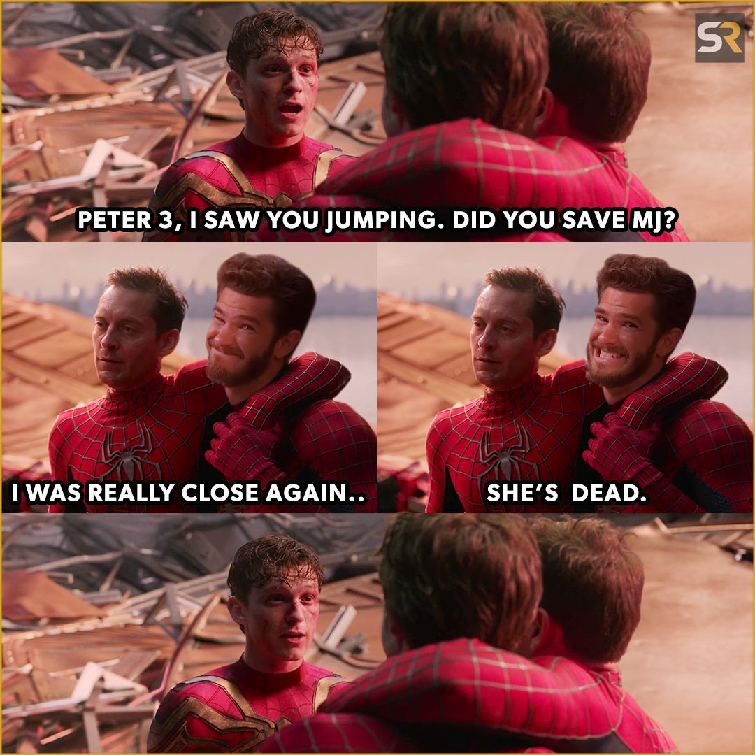 La incapacidad de Spider-Man para salvar a Gwen Stacy de su prematura muerte es un momento crucial en la historia del personaje que cambió para siempre su visión del mundo. Este meme toma lo que es uno de los momentos más oscuros del Universo Marvel y lo vuelve tonto cuando se combina con un fotograma de Spider-Man: Sin camino a casa. Aunque Spider-Man de Andrew Garfield tuvo sus partidarios y detractores, el meme parece sugerir que incluso con el poder combinado de sus seres del universo alternativo, todavía no puede salvar a la niña.