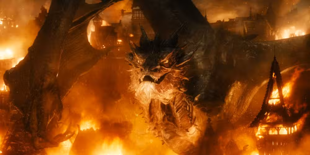 Smaug era tan tremendo como cualquier dragón del mundo. Game of Thrones programa de televisión, y su inteligencia y el hecho de que podía hablar lo convirtieron en una bestia aún más aterradora en el ámbito de la historia. Smaug podría ser el dragón más grande que jamás haya aparecido en una película de fantasía.