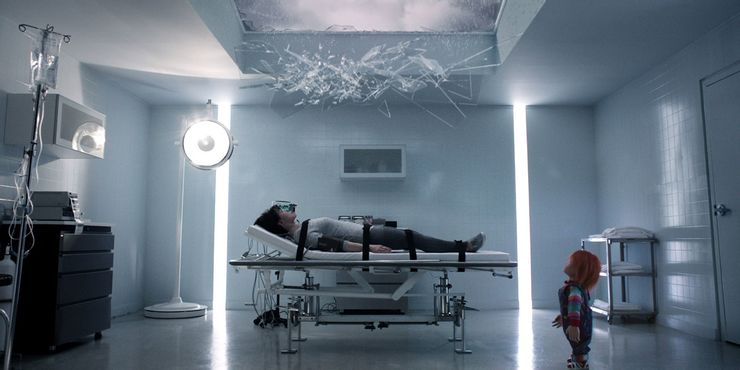 Fue entonces cuando apareció Chucky y miró hacia el techo de cristal sobre la camilla. Chucky apunta su bote de aire al techo y lo hace pedazos. Un primer plano muestra a Claire comenzar a llorar cuando el vaso cae y luego una pieza la decapita en una matanza perfectamente colocada. Estas muertes creativas ayudaron Culto de Chicky lograr la puntuación más alta de Rotten Tomatoes.