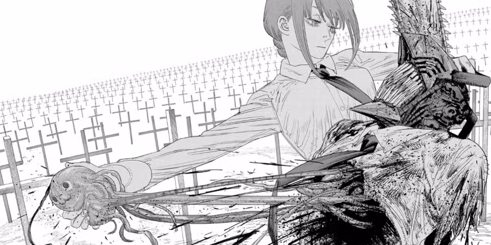Lo sorprendente es que la sangre que Denji bebió de Power resulta útil en esta batalla. salvando su vida. Sin embargo, en la segunda parte de esta pelea, Denji inventa un plan brillante con Pochita para dejar a Makima vulnerable a un golpe decisivo, siendo esta la mayor y más trágica victoria de Denji hasta el momento.