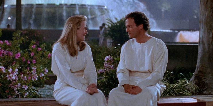 Cuando Daniel Miller (Brooks) muere en un accidente automovilístico y es enviado ante dos jueces para decidir qué tan apto está para el cielo, el infierno o un regreso terrenal, sopesa todos los pros y los contras de su existencia mientras se enamora de una mujer fallecida recientemente. llamada Julia (Meryl Streep). Al igual que Cassie en Más allá de la fiesta, Dan es recompensado por seguir su corazón.