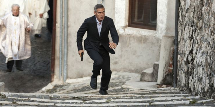 Si bien Beckett es un hombre común atrapado en la situación equivocada, Jack (Clooney) es un sicario exitoso que no se da cuenta de que lo están preparando para su propia muerte en Italia. Ambos personajes son solitarios que pueden depender de muy pocas personas y deben atravesar un lugar desconocido mientras se defienden de una serie de ataques explosivos.