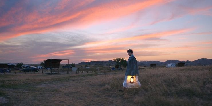 Fern (Frances McDormand) llega a los sesenta y lleva un estilo de vida nómada, después de haber perdido su trabajo, su hogar y su marido. Aunque la historia de Fern no se basa en emociones directas, la mayor parte del dolor y la incertidumbre de su vida se transmite sutilmente a través de su viaje. Nomadland toma la premisa de una película de viajes escapista y la subvierte por completo, adornada con algunas tomas cautivadoras de gran angular de paisajes estéticamente sombríos.