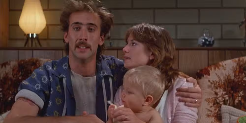 Siguieron su intensa película negra. sangre sencilla con Criando Arizonaque es una película caprichosa y tonta sobre un criminal y su esposa que roban un bebé de un grupo de quintillizos después de no poder concebir repetidamente. Una de las películas que definió la carrera de Nicolas Cage, es una carcajada que se inclina hacia la ridiculez de su premisa.