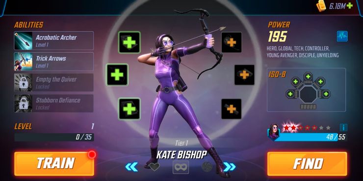 Kate Bishop es una de las nuevas incorporaciones a Fuerza de ataque de Marvel, y se unió a Echo para completar el equipo de los Jóvenes Vengadores junto a las veteranas Ms. Marvel, Squirrel Girl y America Chavez. La mayoría de los fanáticos esperaban que Kate fuera categorizada como un personaje de habilidad, pero su uso de flechas engañosas la llevó a Tech.