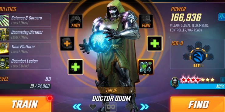 Doctor Doom ve uso en el meta Arena actual, y también es un elemento básico en Doom Raids. Sus Rasgos de Origen duales de Tech y Mystic le dan una gran versatilidad, y sus Doom Bots pueden atraer golpes enemigos para ayudar a mantener vivos a los equipos de los jugadores.