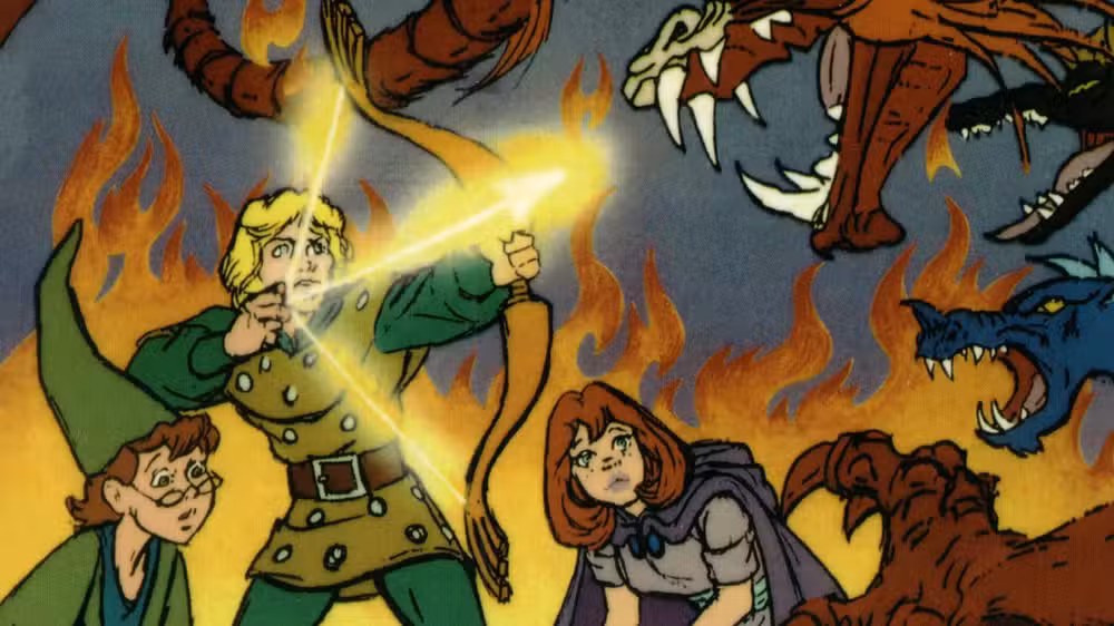 el mundo de Dragones y Mazmorras Se apoderó de las pantallas de televisión en los años 80 con una serie animada. Dragones y Mazmorras sigue a un grupo de amigos de entre ocho y 15 años que son transportados al reino del título después de dar un paseo mágico y oscuro en una montaña rusa de un parque de diversiones.
