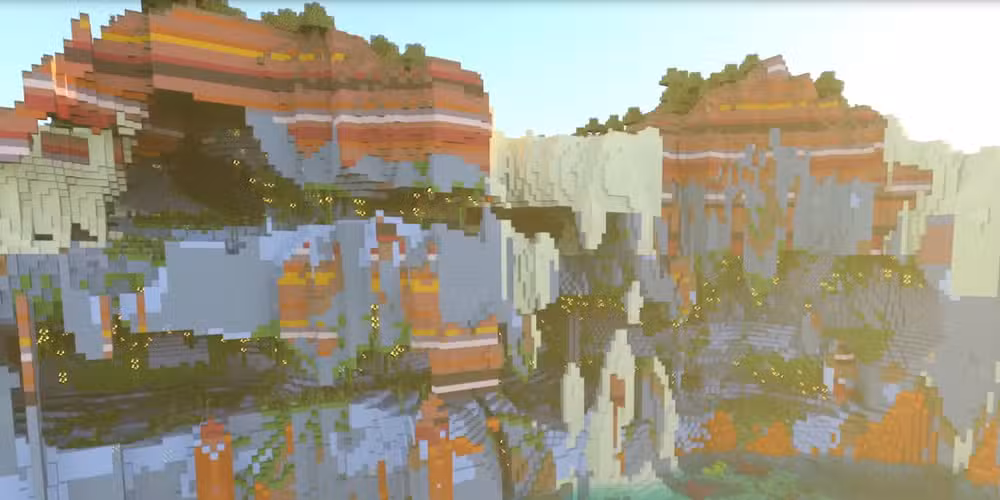 Exuberantes semillas de cueva en Minecraft son normalmente difíciles de construir, ya que muchos casos del bioma son demasiado profundos para un hogar permanente. Sin embargo, esta semilla desafía que al darle una exuberante cueva para vivir que está expuesta al mundo exterior, con entradas talladas en el lado de algunos acantilados altos de Badlands.