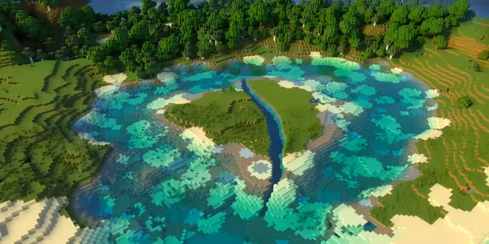 Un solo río divide las islas, creando una extraña unidad de agua fresca y salada aquí que se suma a la estética de la ubicación. Dos jugadores aquí casi podrían formar bases en guerra, una en cada isla para duelo por recursos. Mientras que una semilla muy simple, se ve extremadamente naturalinvitar ideas creativas de construcción que tengan en cuenta su posición frente a la playa.