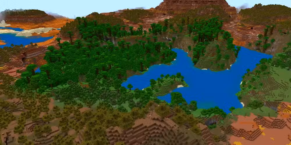 En el corazón de un bioma de las tierras Badlands aparentemente interminables, Esta semilla alberga una pequeña jungla con un río saludable, creando un oasis prácticamente pidiendo una base para ser construido. Los enormes árboles de la jungla podrían ser ver el desierto más grande, detectar puestas de avanzada u otras estructuras importantes para investigar.