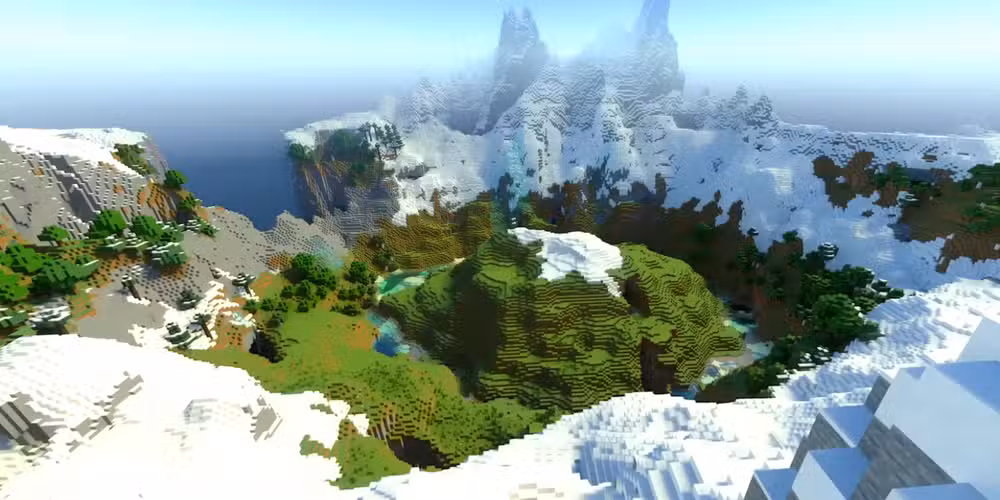 Las vistas panorámicas desde esta semilla se conectan a otras áreas frías, como varias vías del valle hacia las montañas y un bioma de la jungla cerca. Esta semilla ofrece mucho para cualquiera que busque construir su base en Minecraft Dentro de un mundo que tiene mucha aventura para ofrecer.