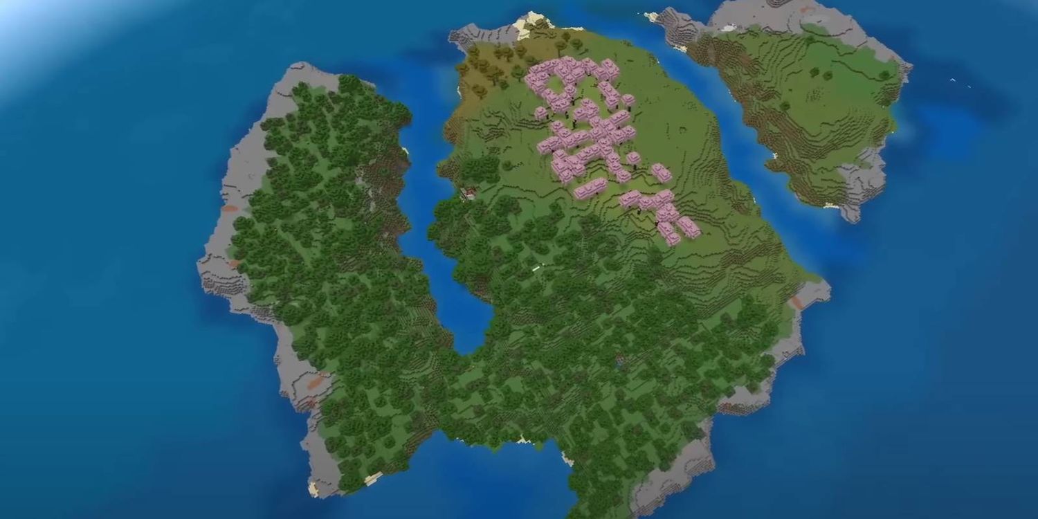 Las mejores semillas de Flor de Cerezo en Minecraft te brinda la oportunidad de experimentar el nuevo bioma agregado a la actualización 1.20, que presenta hermosos árboles de flores rosadas dentro de un nuevo tipo de bosque. Esta semilla te coloca en una isla de Blossoms, rodeada por todos los demás biomas del juego. Si bien puedes viajar a cualquier lugar para crear tu base principal, hay algo especial en una prístina isla rosa que se encuentra cerca de paisajes tan interesantes.