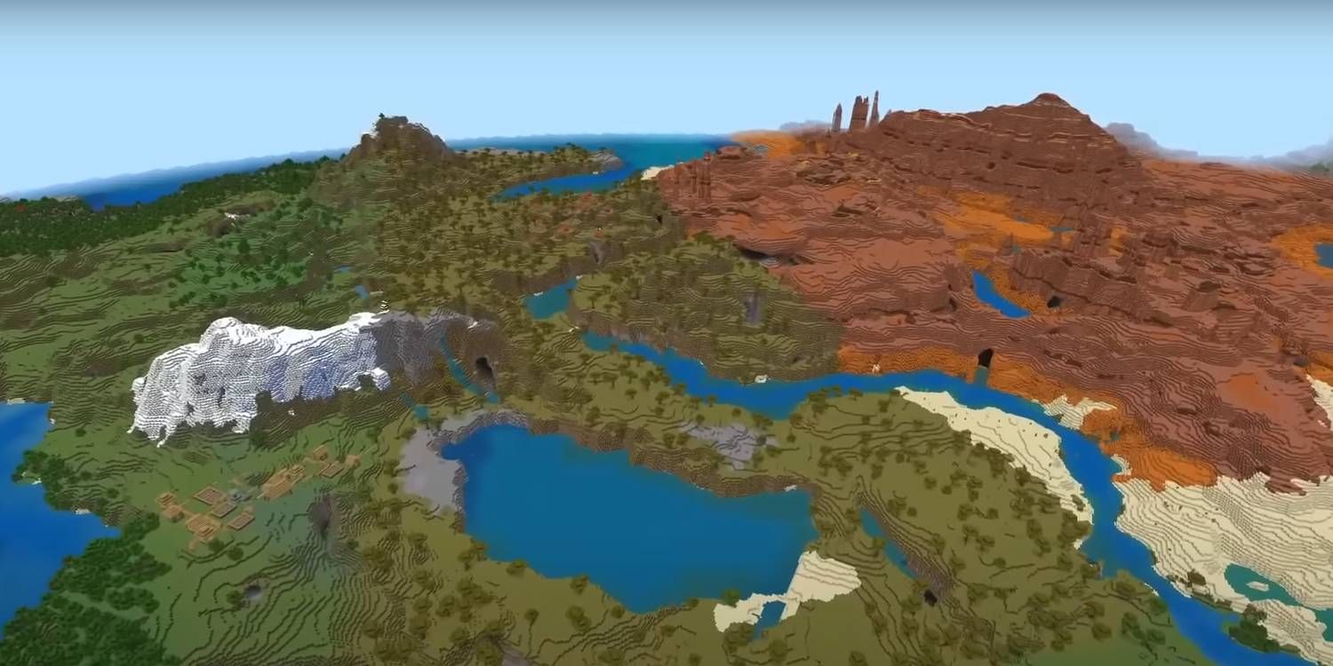 Esta semilla tiene cada bioma de Overworld dentro de poco más de 1000 bloques justo cuando generas, creando una distribución sorprendentemente uniforme de entornos. Un gran Páramos El bioma está situado junto a un gran océano que conecta todos estos lugares con cada tipo de bioma acuático. Incluso los increíblemente raros Cueva exuberante El bioma se ve debajo de un gran barranco, lo que le permite cosechar casi todos los materiales conocidos en Minecraft.
